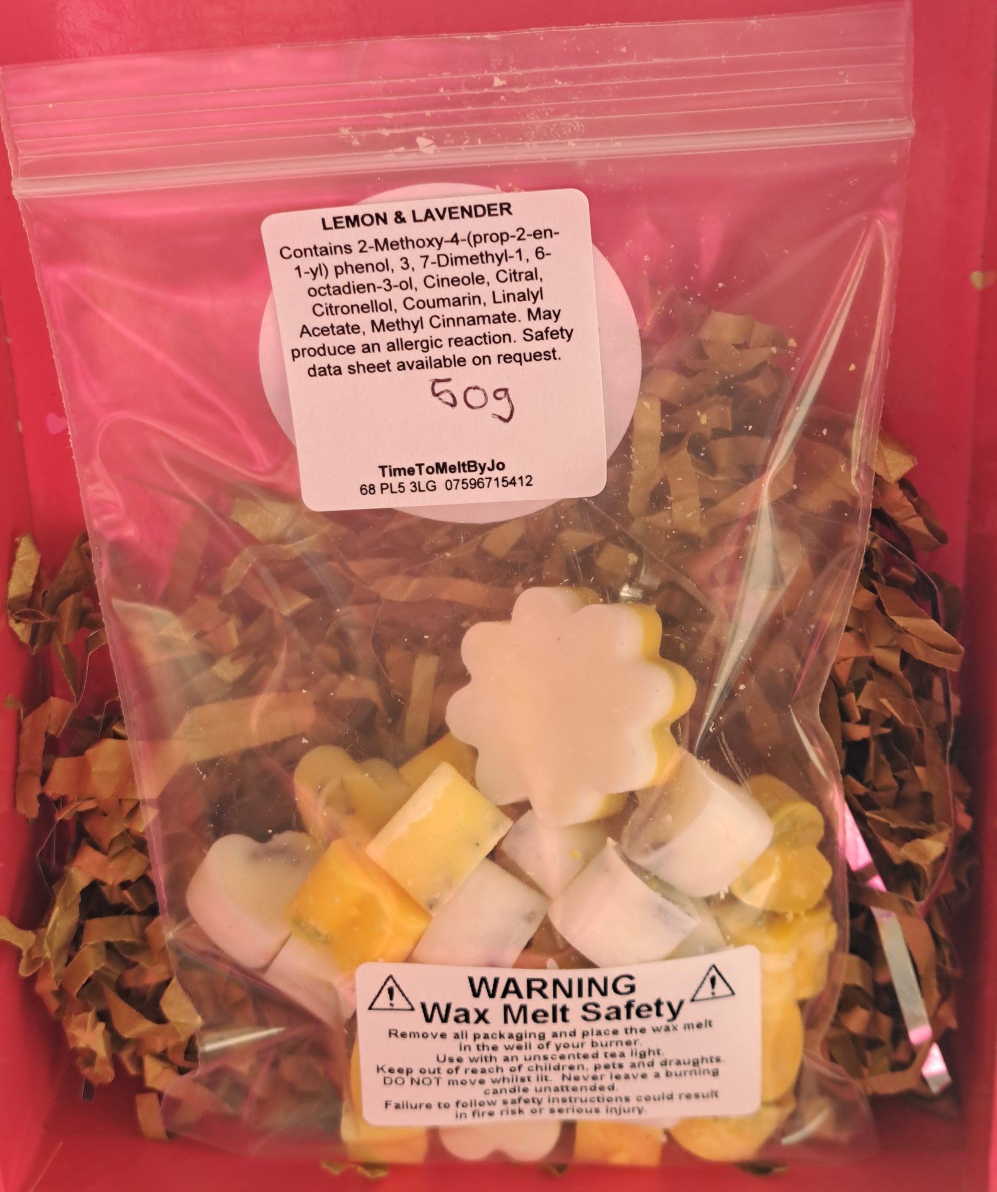 Contains:1-1phenol, 3.7-meth-1- Oddie-3- Cintra, Citronella, Couman Linaly Acetate, Methyl Cinna. May produce an allergic reaction. Safety data sheet available on request.