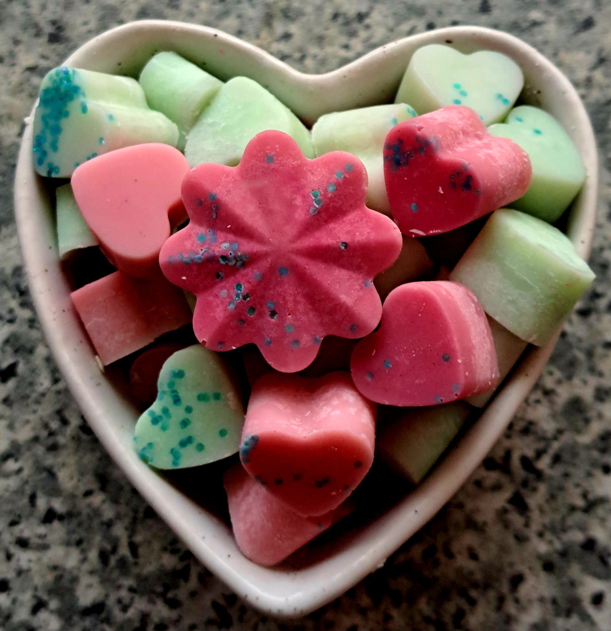 30 small heart-shaped wax melts + 1 medium heart